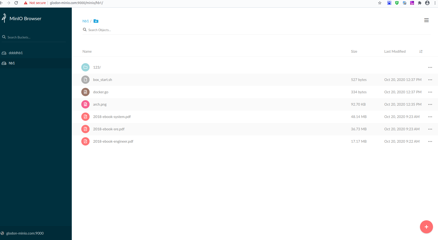 n, err := minioClient.PutObject(ctx, bucketName, "123/" + objectName, object, objectStat.Size(), // 此处在指定bucket中创建一个文件夹123,并将文件保存到此